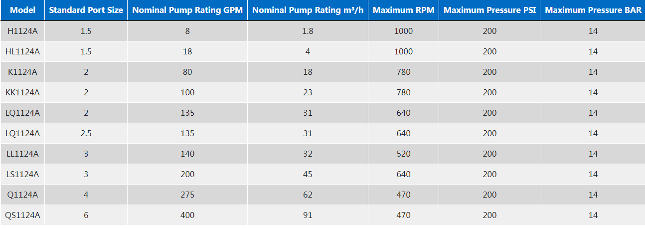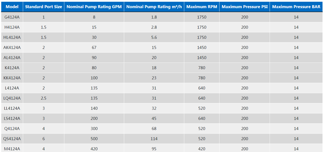 1124A系列™ 采用O-Pro®密封技術的內部齒輪泵是粘合劑、淀粉、聚合物等的完美解決方案,因為它具有可靠的密封和易于維護。它可以處理8至400 GPM(1.8至91 m³/h)的流量。