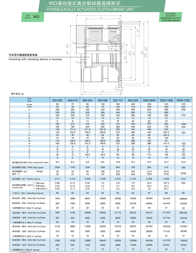 WO系列是一種組合式離合器/制動(dòng)裝置,采用燒結(jié)青銅摩擦材料油驅(qū)動(dòng)。它通常用于接合和制動(dòng)任何工業(yè)機(jī)器(偏心壓力機(jī)、關(guān)節(jié)壓力機(jī)、金屬?zèng)_壓、封邊機(jī)、沖床、深沖壓力機(jī)、機(jī)械剪切機(jī)、熱鍛等)。它是要求高性能和最大可靠性的機(jī)器的理想產(chǎn)品。